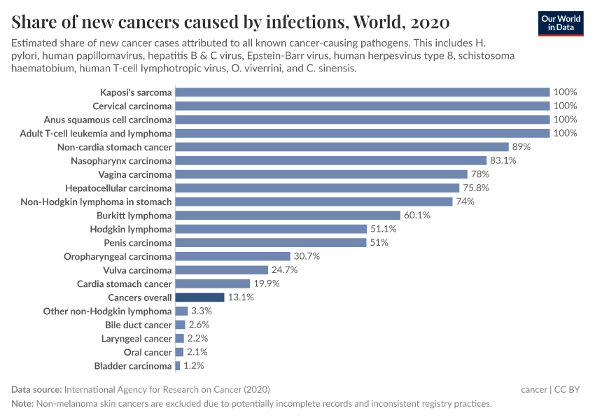 In total, it’s estimated that around 13% of all cancers worldwide were caused by infections in 2020.