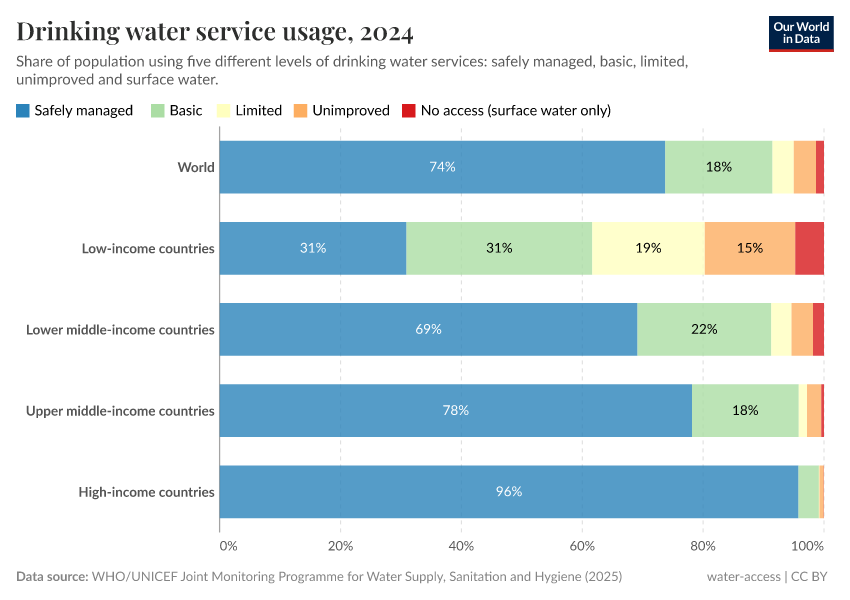 Therefore, unsafe water sources are limited primarily to low and lower-middle-income countries.