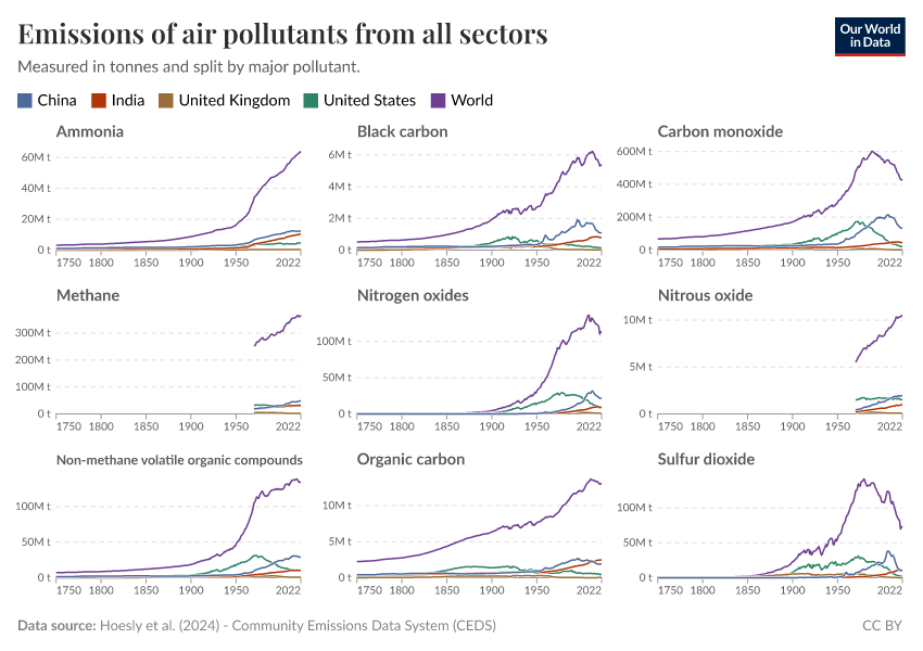 Explore historical emissions of air pollutants across the world.