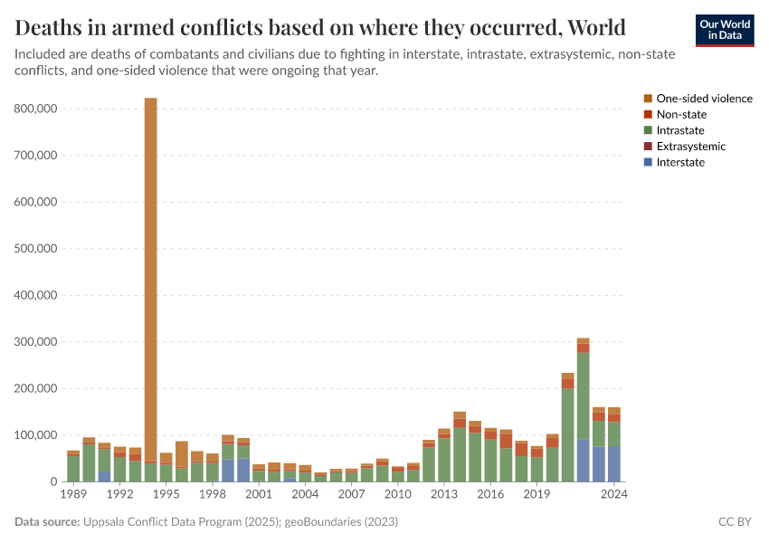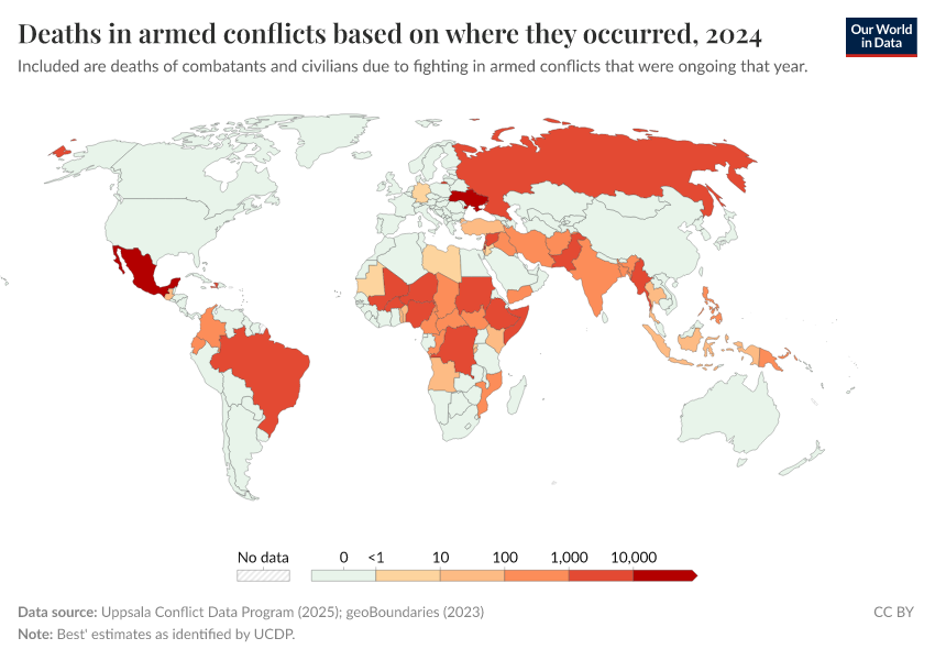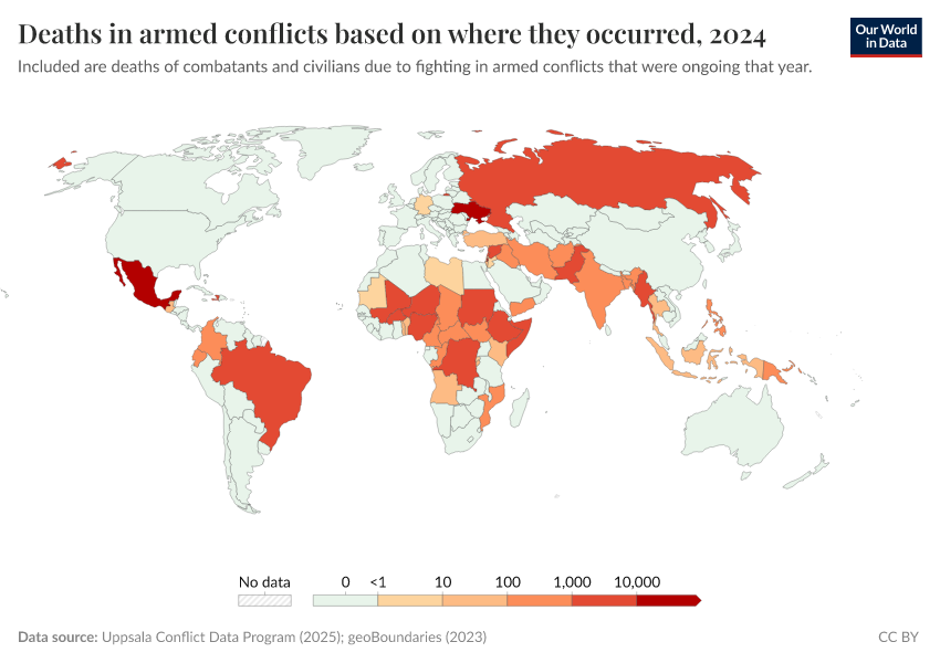 Explore conflict deaths and death rates across the world's countries.