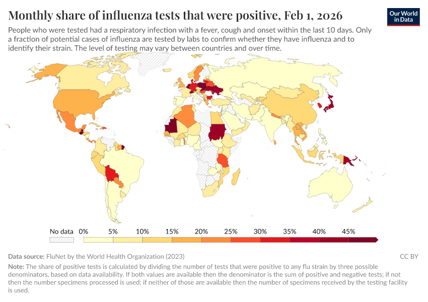 Explore global data produced by the World Health Organization on influenza symptoms and cases.