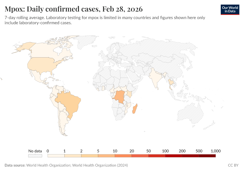 Explore the data produced by the World Health Organization and Africa CDC on mpox (monkeypox).