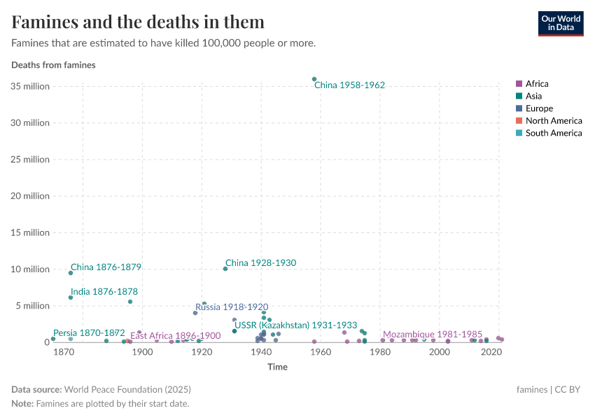 Famine across the world since 1870