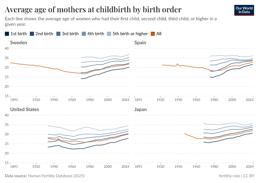 By looking at these additional metrics, we can better understand when, why, and how parents have children — and what this means for individuals and societies. The following section highlights the key insights on this topic. Below are links to our in-depth articles, which explore several topics in more detail.