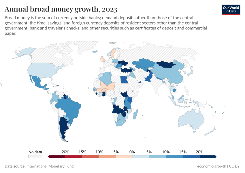 “Data Page: Annual broad money growth”. Our World in Data (2025). Data adapted from International Monetary Fund. Retrieved from https://remove-datapage-tags.owid.pages.dev/grapher/annual-broad-money-growth [online resource]How to cite this data