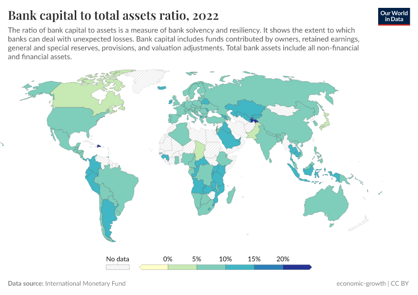 “Data Page: Bank capital to total assets ratio”. Our World in Data (2025). Data adapted from International Monetary Fund. Retrieved from https://remove-datapage-tags.owid.pages.dev/grapher/bank-capital-to-total-assets-ratio [online resource]How to cite this data
