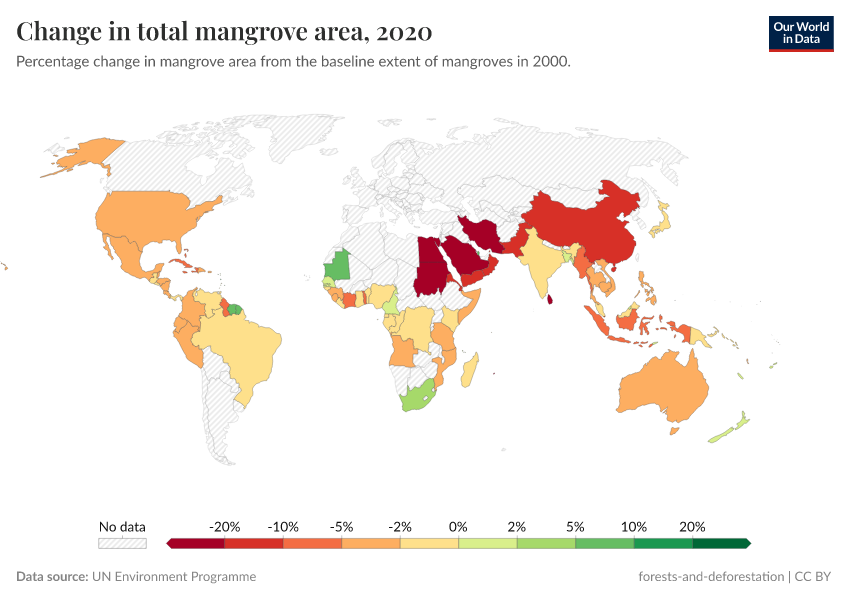 “Data Page: Change in total mangrove area”. Our World in Data (2025). Data adapted from UN Environment Programme. Retrieved from https://remove-datapage-tags.owid.pages.dev/grapher/change-in-total-mangrove-area [online resource]How to cite this data