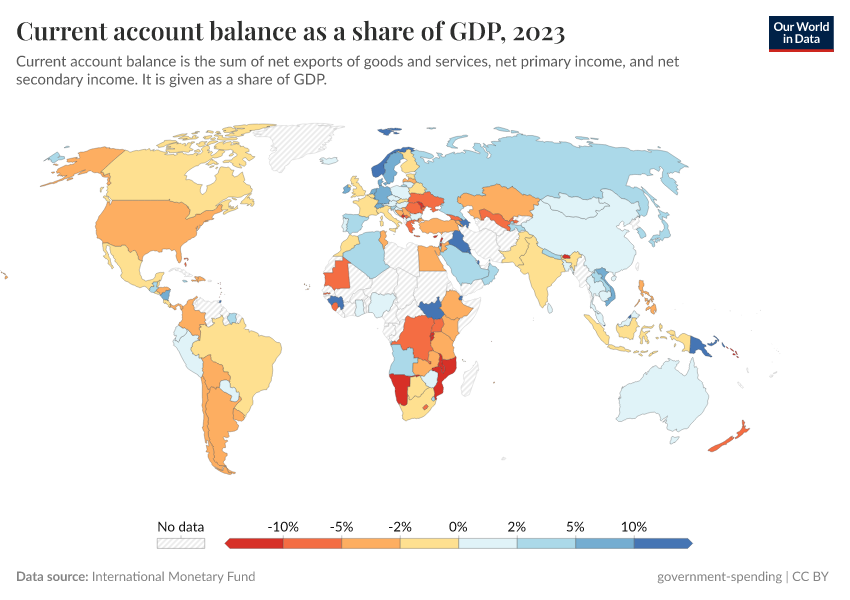 “Data Page: Current account balance as a share of GDP”. Our World in Data (2025). Data adapted from International Monetary Fund. Retrieved from https://remove-datapage-tags.owid.pages.dev/grapher/current-account-balance-as-a-proportion-of-gdp [online resource]How to cite this data
