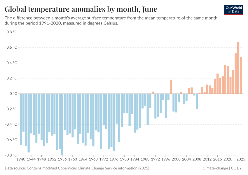 Contains modified Copernicus Climate Change Service information (2025) – with major processing by Our World in Data. “Global temperature anomalies by month” [dataset]. Contains modified Copernicus Climate Change Service information, “ERA5 monthly averaged data on single levels from 1940 to present 2” [original data]. Retrieved June 26, 2025 from https://remove-datapage-tags.owid.pages.dev/grapher/global-temperature-anomalies-by-month