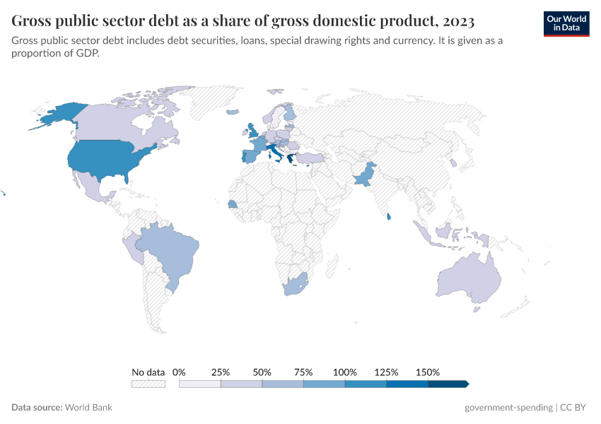 “Data Page: Gross public sector debt as a share of gross domestic product”. Our World in Data (2025). Data adapted from World Bank. Retrieved from https://remove-datapage-tags.owid.pages.dev/grapher/gross-public-sector-debt-as-a-proportion-of-gdp [online resource]How to cite this data