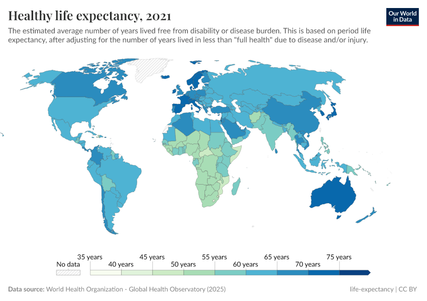 “Data Page: Healthy life expectancy”. Our World in Data (2025). Data adapted from World Health Organization. Retrieved from https://remove-datapage-tags.owid.pages.dev/grapher/healthy-life-expectancy-at-birth [online resource]How to cite this data