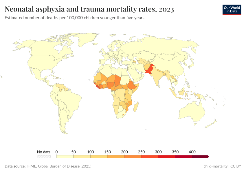 IHME, Global Burden of Disease (2024) – with minor processing by Our World in Data. “Neonatal asphyxia and trauma mortality rates” [dataset]. IHME, Global Burden of Disease, “Global Burden of Disease - Deaths and DALYs” [original data]. Retrieved June 26, 2025 from https://remove-datapage-tags.owid.pages.dev/grapher/mortality-neonatal-asphyxia-and-trauma