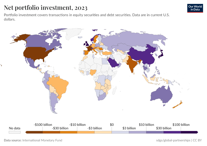 International Monetary Fund – processed by Our World in Data. “Net portfolio investment” [dataset]. International Monetary Fund, “International Monetary Fund, Balance of Payments Statistics Yearbook and data files.” [original data]. Retrieved June 26, 2025 from https://remove-datapage-tags.owid.pages.dev/grapher/net-portfolio-investment