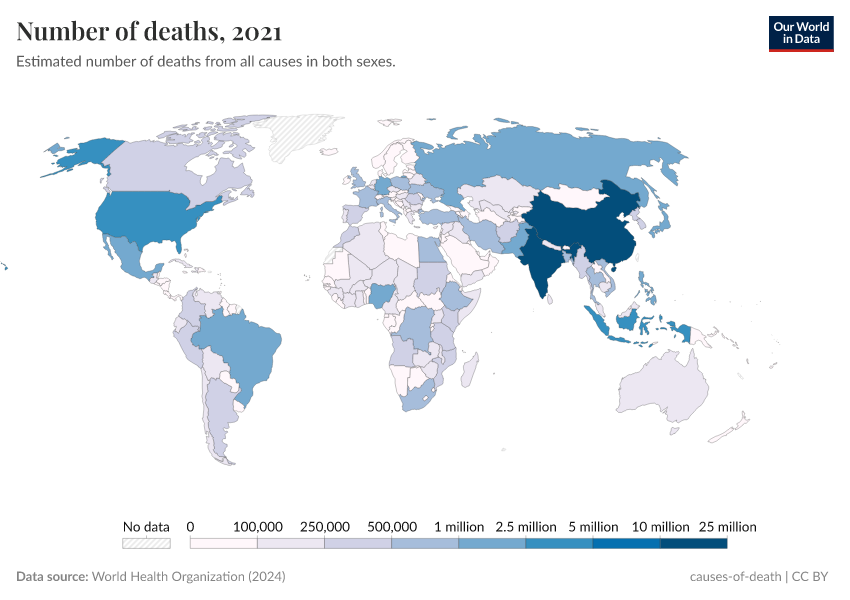 World Health Organization (2024) – with major processing by Our World in Data. “Number of deaths” [dataset]. World Health Organization, “Global Health Estimates” [original data]. Retrieved June 26, 2025 from https://remove-datapage-tags.owid.pages.dev/grapher/number-of-deaths-who