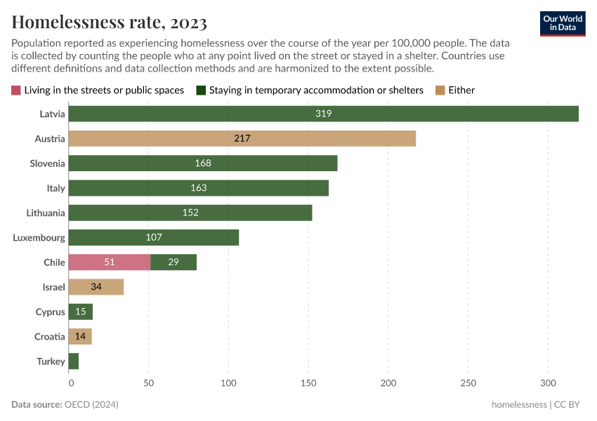Bastian Herre and Pablo Arriagada (2024) - “Homelessness” Published online at OurWorldinData.org. Retrieved from: 'https://remove-datapage-tags.owid.pages.dev/homelessness' [Online Resource]BibTeX citation
