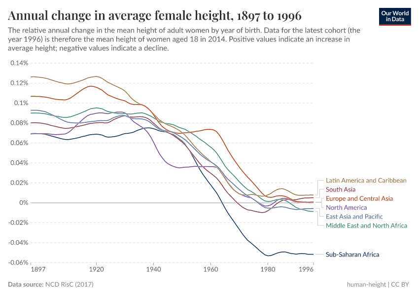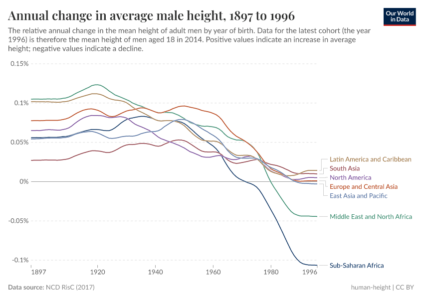 Relative changes offer a different perspective on changes in average human heights, illustrated here in men and here for women.