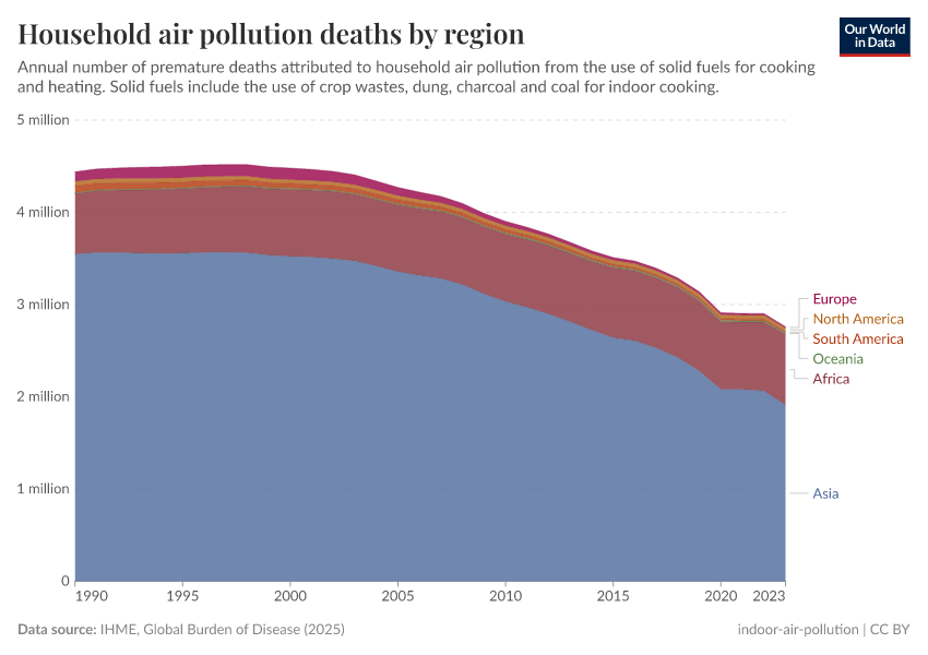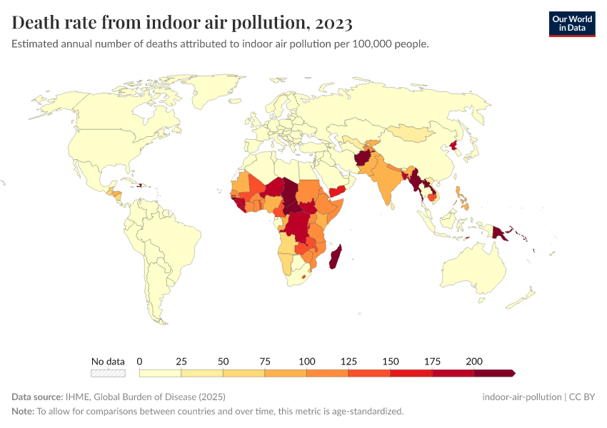 Hannah Ritchie and Max Roser (2022) - “Indoor Air Pollution” Published online at OurWorldinData.org. Retrieved from: 'https://remove-datapage-tags.owid.pages.dev/indoor-air-pollution' [Online Resource]BibTeX citation