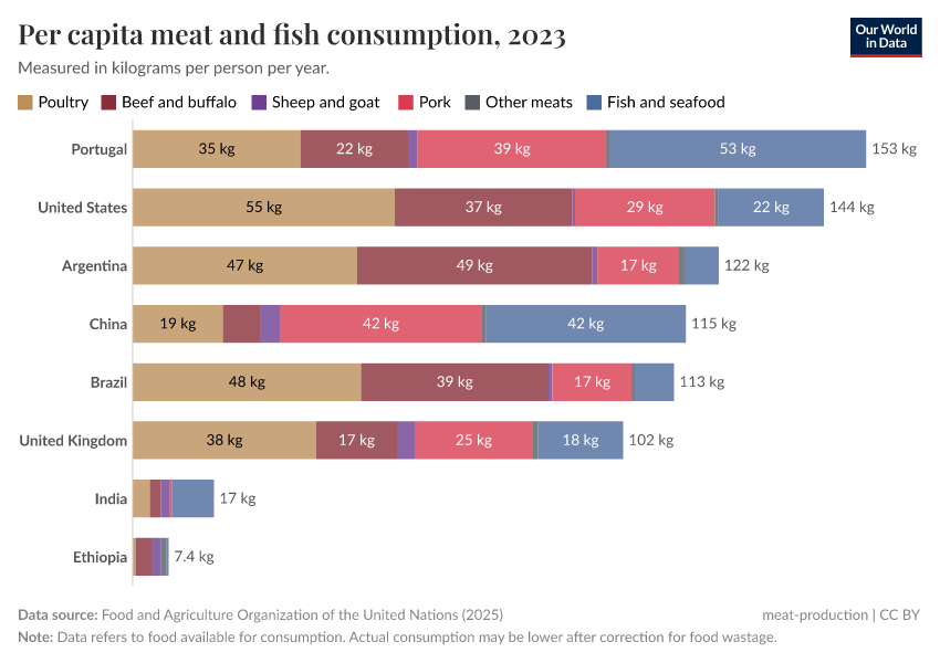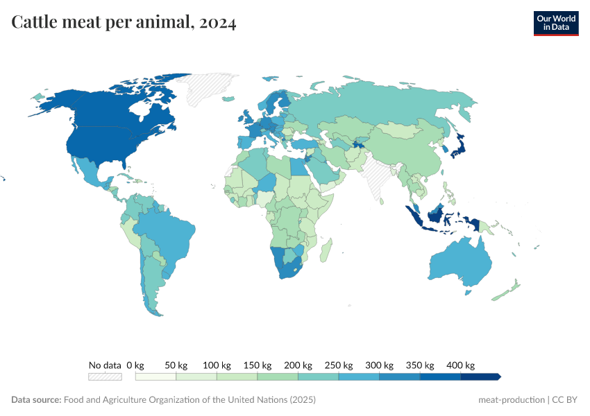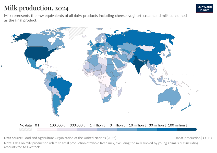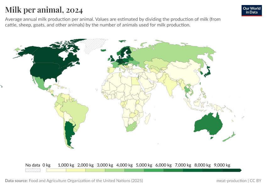 Hannah Ritchie, Pablo Rosado, and Max Roser (2019) - “Meat and Dairy Production” Published online at OurWorldinData.org. Retrieved from: 'https://remove-datapage-tags.owid.pages.dev/meat-production' [Online Resource]BibTeX citation