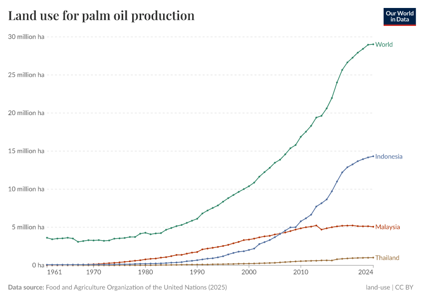 Hannah Ritchie (2021) - “Palm Oil” Published online at OurWorldinData.org. Retrieved from: 'https://remove-datapage-tags.owid.pages.dev/palm-oil' [Online Resource]BibTeX citation