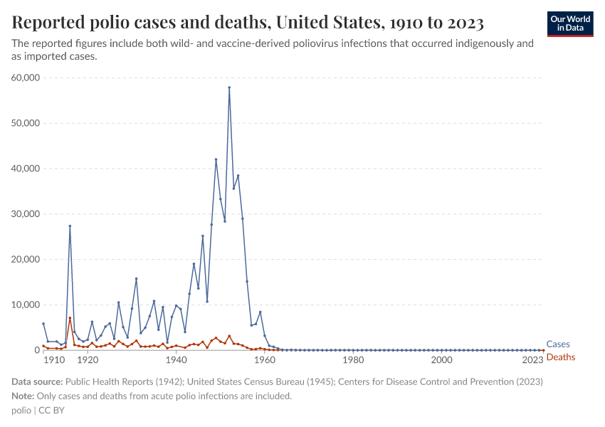 Saloni Dattani, Fiona Spooner, Sophie Ochmann, and Max Roser (2022) - “Polio” Published online at OurWorldinData.org. Retrieved from: 'https://remove-datapage-tags.owid.pages.dev/polio' [Online Resource]BibTeX citation
