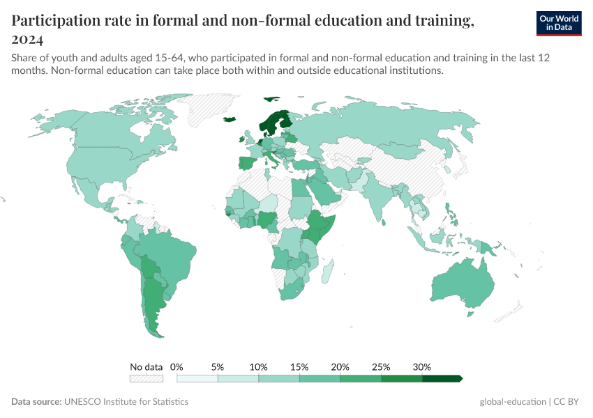 Further information on education and learning can be found across several Our World in Data topic pages on Education, Teachers and Schools, Education Spending, and Literacy.