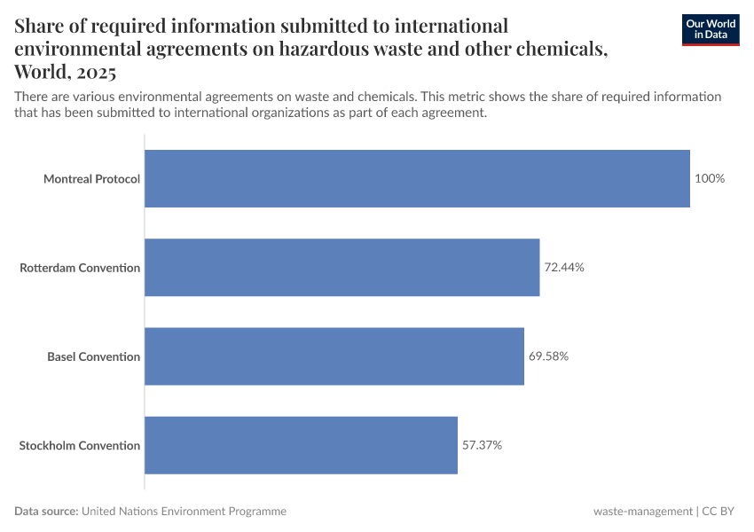 There are a number of international multilateral agreements on hazardous waste and other chemicals (including the Montreal Protocol, Basel Convention, Rotterdam Convention and Stockholm Convention).
