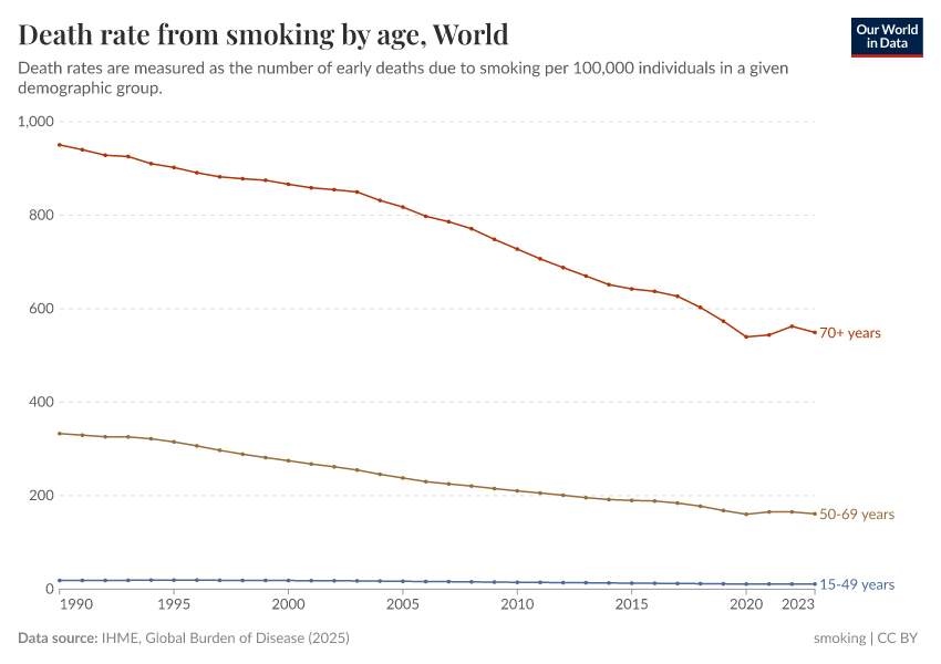 Hannah Ritchie and Max Roser (2023) - “Smoking” Published online at OurWorldinData.org. Retrieved from: 'https://remove-datapage-tags.owid.pages.dev/smoking' [Online Resource]BibTeX citation
