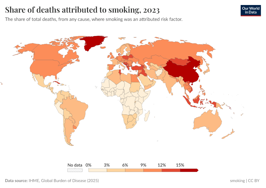In many countries, a high share of deaths is attributed to smoking