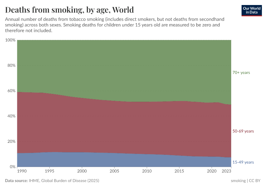 Most deaths from smoking occur in older populations