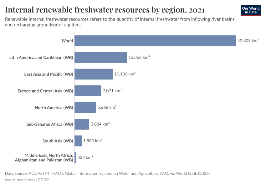 The chart shows the total internal renewable freshwater resources by region.